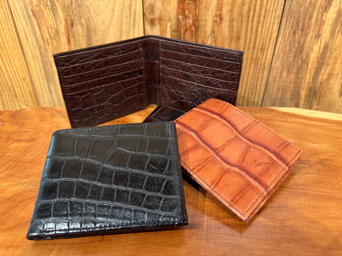 This classic bi-fold wallet is made in full alligator, inside and out. This wallet will last forever and never goes out of style.