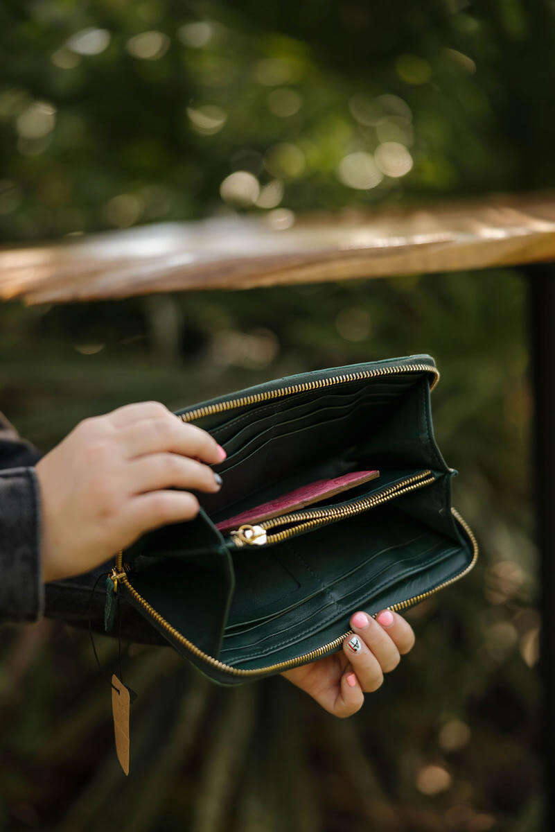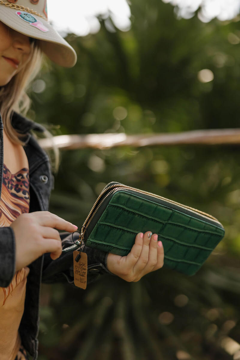 The ladies zipper wallet is a must! Whether you tote your wallet like a clutch or carry it in a larger purse, this is the wallet for you! It is of utmost class with stunning alligator leather and all the pockets inside help keep everything just the way you like it. There is even an option for a wallet with a wrist strap if you prefer that hands free option!