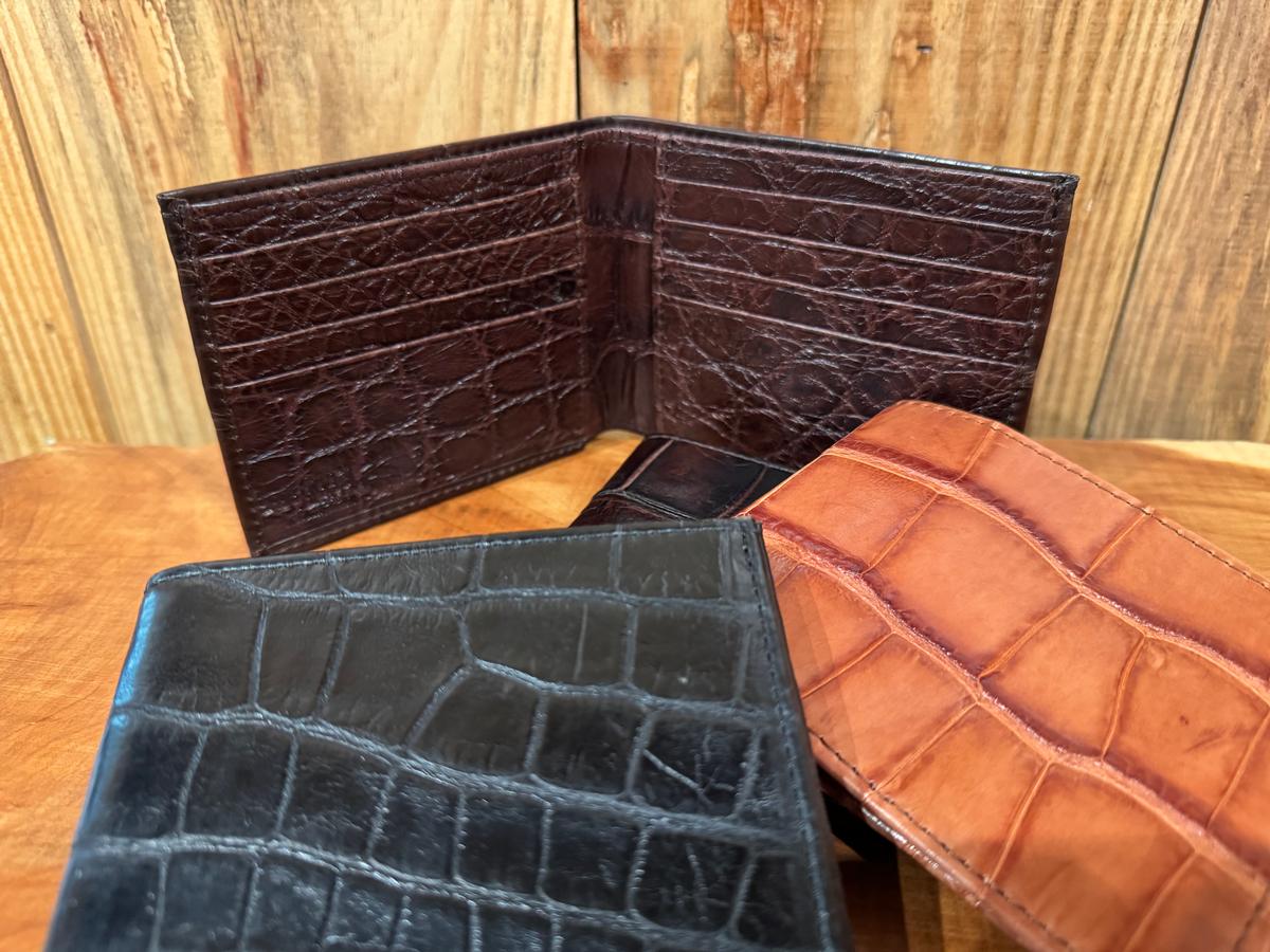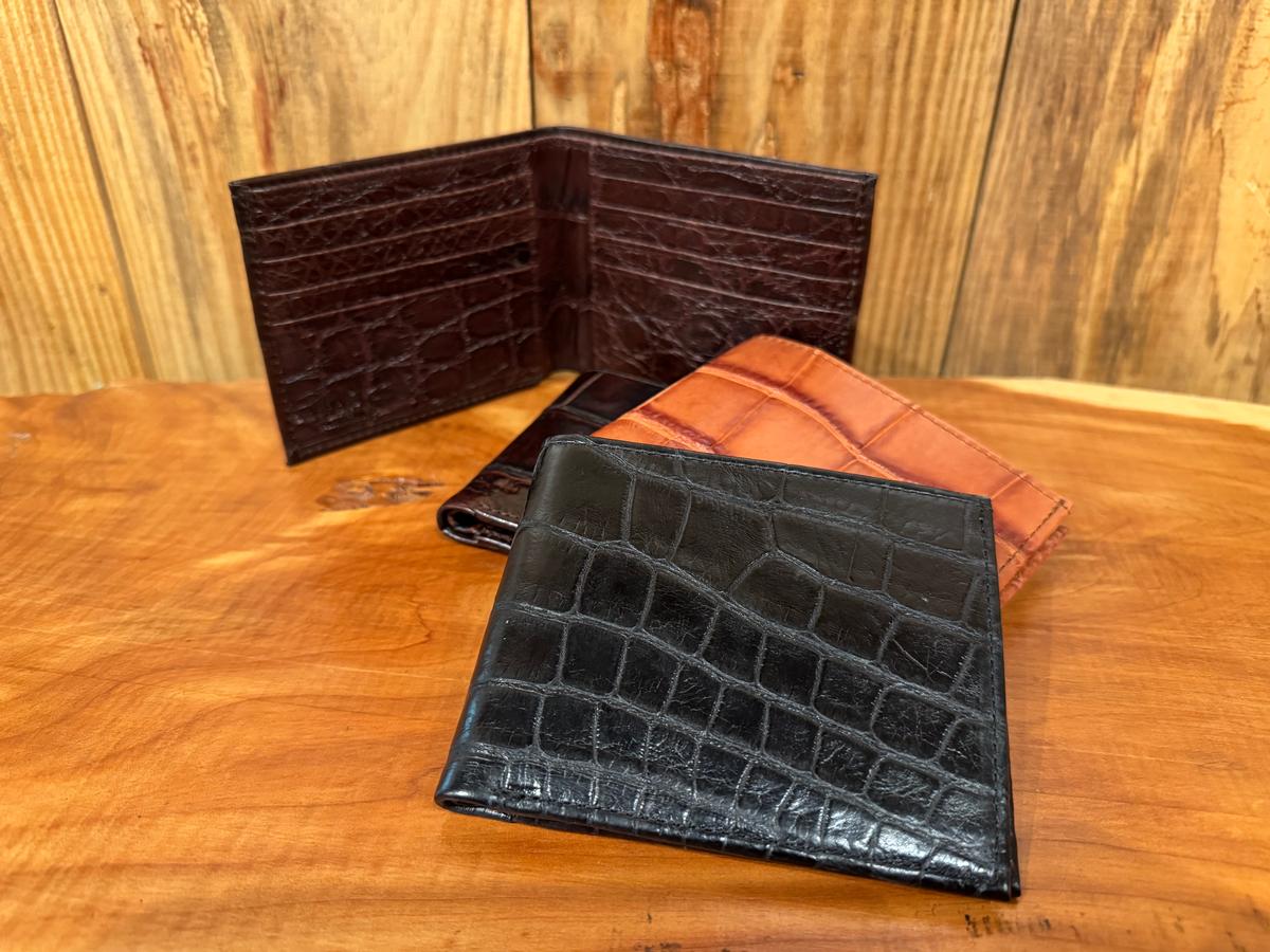 This classic bi-fold wallet is made in full alligator, inside and out. This wallet will last forever and never goes out of style.