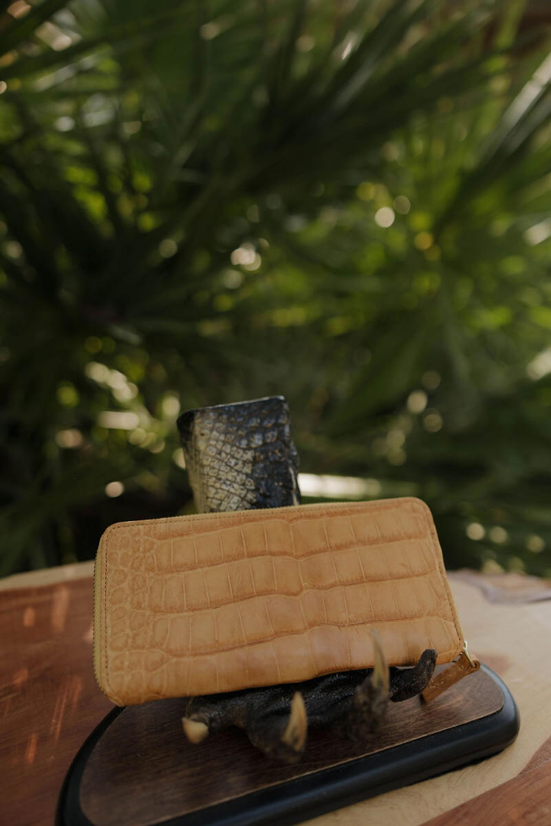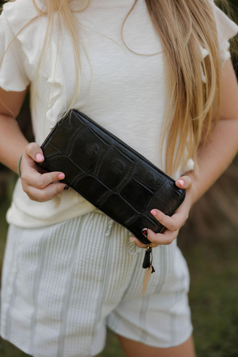 The ladies zipper wallet is a must! Whether you tote your wallet like a clutch or carry it in a larger purse, this is the wallet for you! It is of utmost class with stunning alligator leather and all the pockets inside help keep everything just the way you like it. There is even an option for a wallet with a wrist strap if you prefer that hands free option!